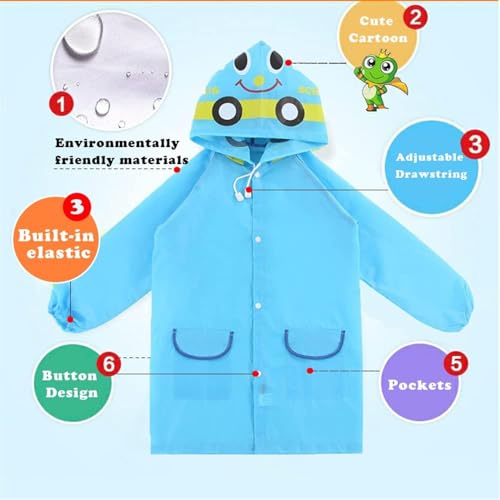 Joyzzz - Joyzzz Kids Raincoat, Reusable Kids Rain Poncho with Hood, Portable Kids Rain Jacket, Cartoon Children's Raincoats, Raincoat for Kids, Waterproof Hooded Rain Poncho for Emergency, Boys, Girls