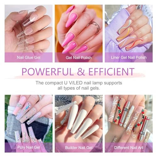 - ☀️【WIDELY APPLICABLE】Gel UV led nail lamp supports all types of UV gel and LED gel nail polish, including nail UV-glue,builder gel, nail sculpture gel, gem glue and LED nail gel etc, which can help your nail polish dry quickly.