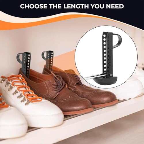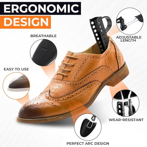 - 👞【Flexible Design】- The length and the width of plastic shoe trees can be adjusted. This men shoe stretcher can keep your shoes in great shape, adjustable length let it easy to put into shoes.