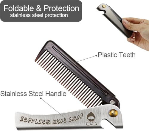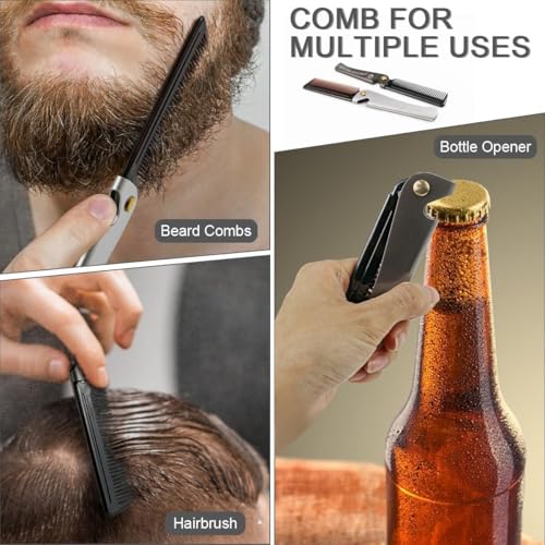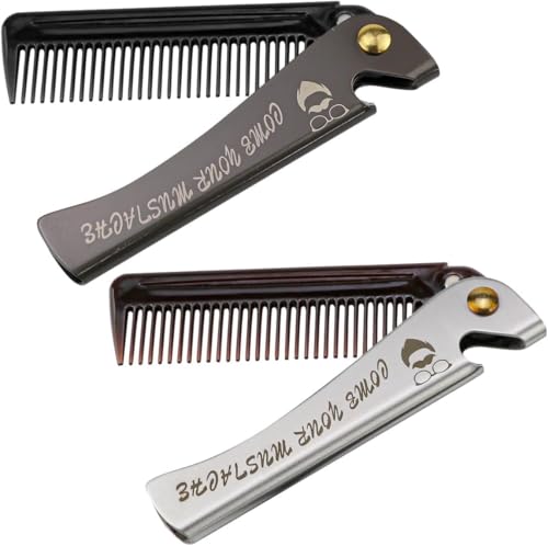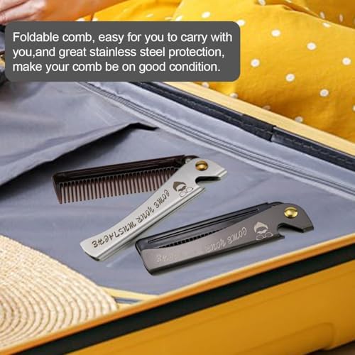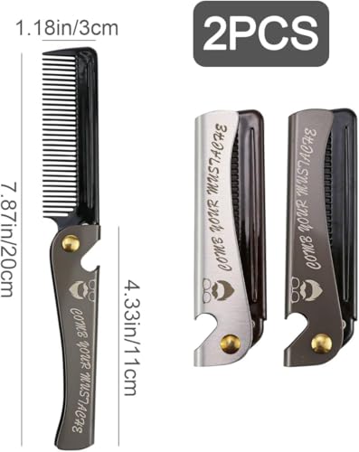 Joyzzz - مشط ستيل للشعر واللحية من جويز، مشط قابل للطي مزدوج الاغراض لتصفيف الشعر واللحية، عبوة من 2 امشاط مدمجة من الستانلس ستيل، مثالي لمجموعة العناية الشخصية للرجال واستخدام الحلاقين