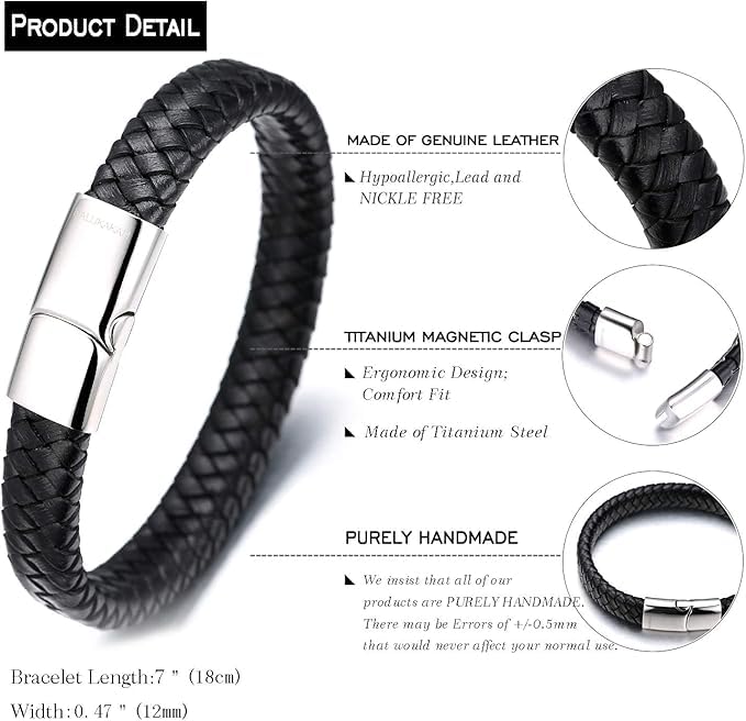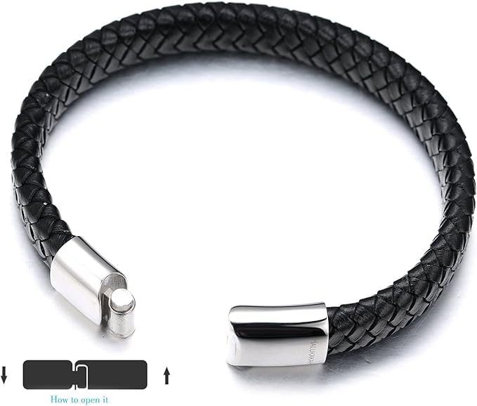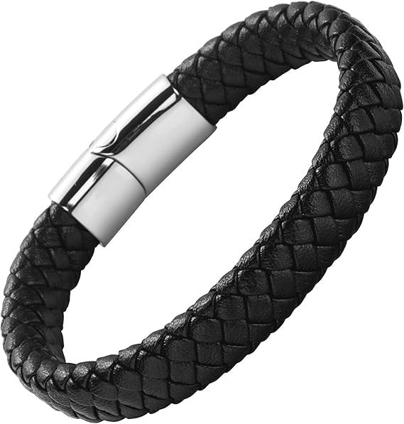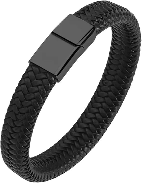 Generic - JPNYWAY Braided Leather Bracelet for Men Magnetic Clasp (17cm, Black)