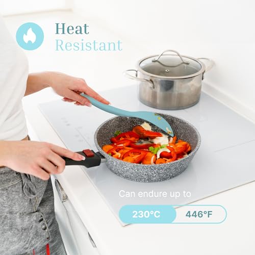 - 𝐍𝐨𝐧-𝐒𝐭𝐢𝐜𝐤 𝐂𝐨𝐨𝐤𝐰𝐚𝐫𝐞: Our silicone utensil set is specially crafted to be sleek and non-scratch, this utensil set works best for non-stick pots, pans, and cookware; by preserving their surfaces, this cooking spoon set not only enhance the lifespan of your cookware but also ensures an efficient cooking experience