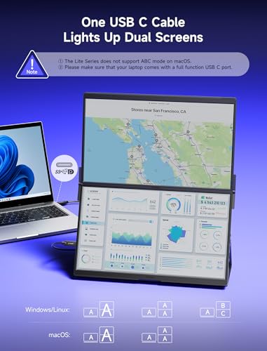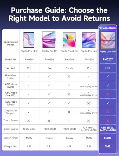 - Super Convenient Truly plug-and-play, no drivers needed—just plug in and use. A single cable lights up two screens, effectively improving cable management and keeping your workspace tidy. FlipGo's unique charging design allows the monitor (when connected to a 65W or higher power source) to power your laptop via the USB-C port, significantly extending your laptop's battery life. (Note: Power adapter not included)