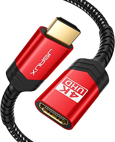 - JSAUX Flex Series Cable - HDMI Male to HDMI Female Extension High Speed 4K@60Hz Adapter Durable Nylon Braided , 10FT Black & Red