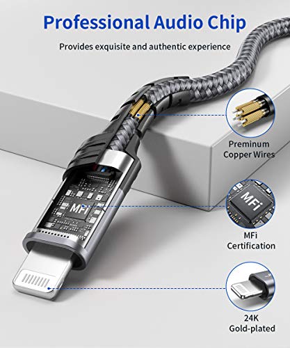 JSAUX - JSAUX iPhone Aux Cable 1.8M [Apple Mfi Certified] Lightning to 3.5mm Headphone Jack Audio Cable, Nylon Braided, Compatible With iPhone 12/12 Mini/12 Pro/11/X/XR/8/7 - Grey