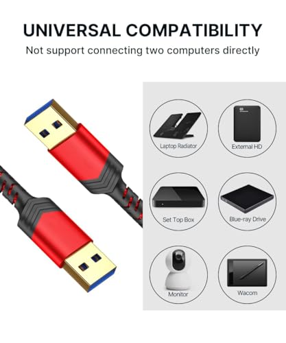 JSAUX - كابل USB إلى USB من جيه سوكس، كابل USB 3.0 A إلى A ذكر، كابل USB ذكر إلى ذكر، سلك USB مزدوج متوافق مع حامل القرص الصلب ومشغل أقراص DVD ومبرد اللاب توب وغير ذلك ( لون أحمر) عبوة من قطعتين (مقاس 1 متر +