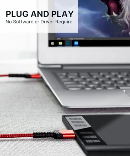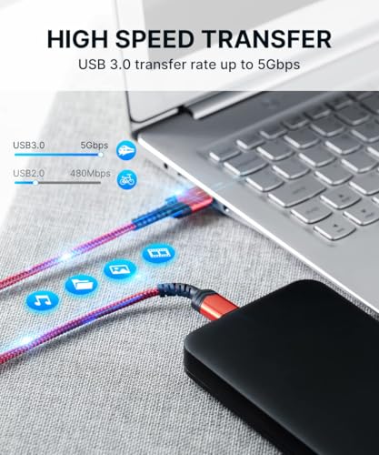 - 【صميم مغطى بنايلون مضفر خالٍ من التشابك】: التصميم المغطى بالنايلون المضفر الخالي من التشابك، يجعل كابل USB 3.0 A إلى A أكثر متانة من غيره. تضيف التغطية بالنايلون المضفر متانة للكابل ويمنع التشابك ويطيل عمره إذ يتحمل الثني خلال الاستخدام أكثر من 10000 مرة