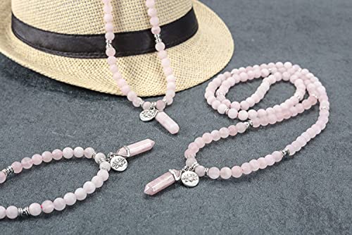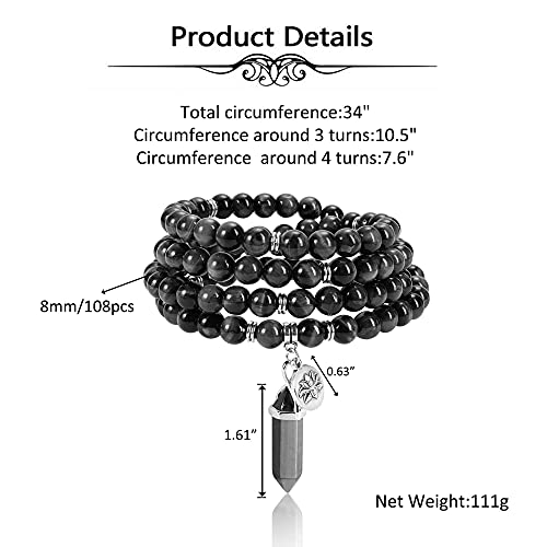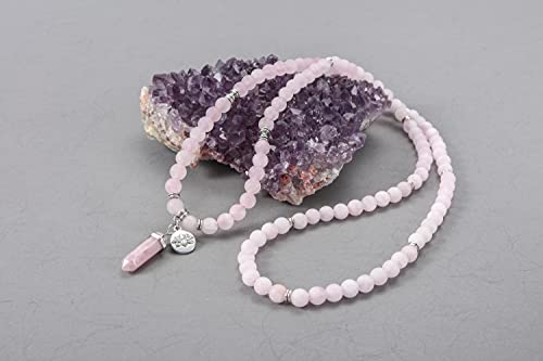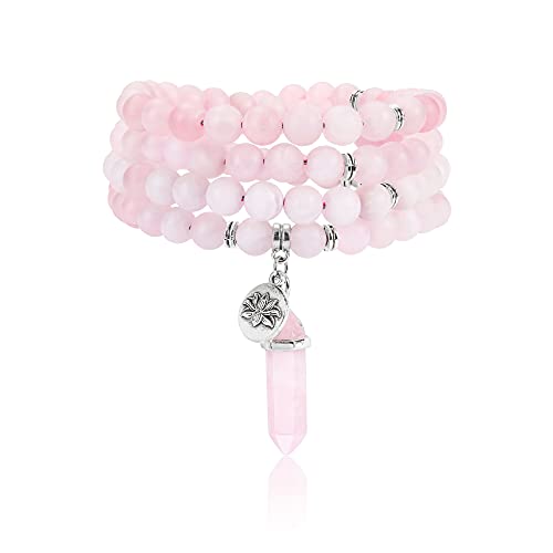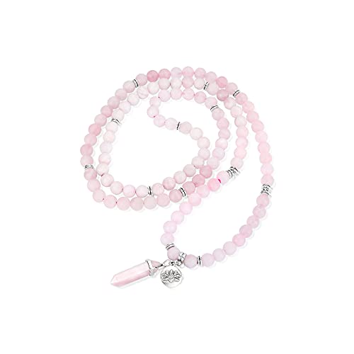 JSDDE - 108 Mala Prayer Beads Wrap Bracelet Natural Crystals Gemstone Lotus Pendant Necklace for Healing Meditation