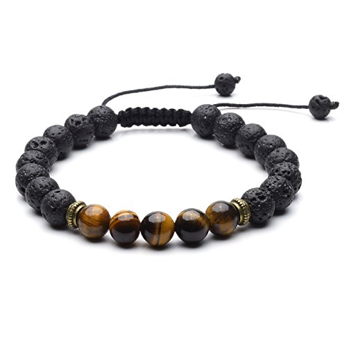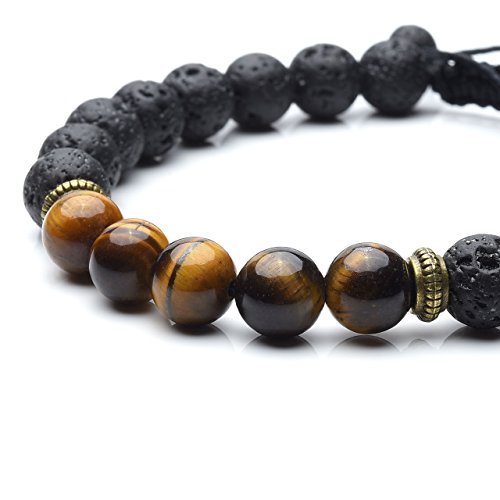 JSDDE - 7 Chakra Healing Bracelet with Real Stones, Lava Diffuser, Mala Meditation Mens Womens Religious Macrame Tassels Stretch Bracelets