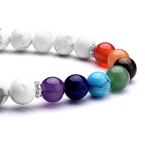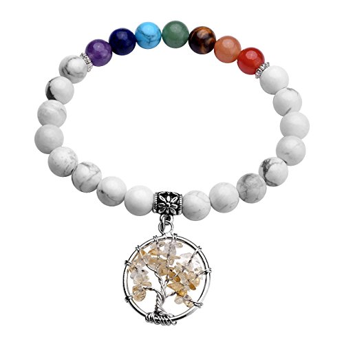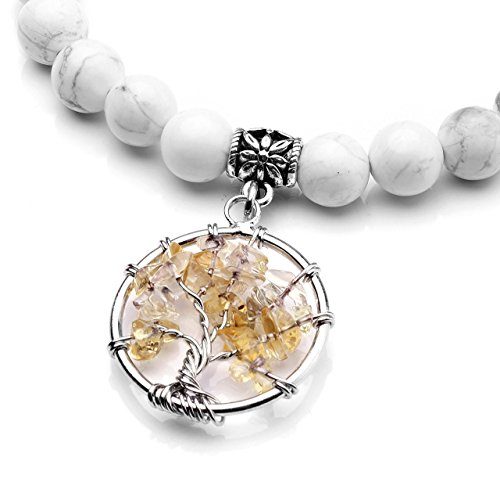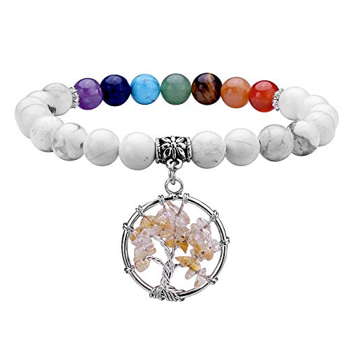 JSDDE - White Howlite Crystals Tree of Life Bracelet Reiki Healing Gemstone Bead 7 Chakra Crystal Bracelets for Yoga Meditation Balancing
