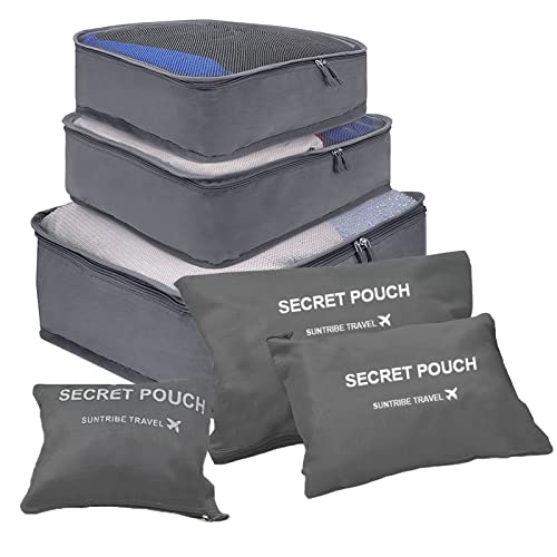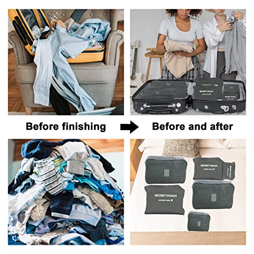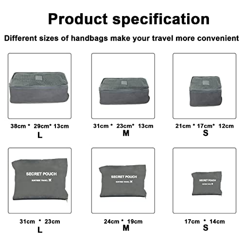 Jsdoin - مكعبات تعبئة للحقائب 6 قطع منظم السفر حقائب التعبئة للماء للملابس أحذية تخزين مستحضرات التجميل إكسسوارات رمادي نايلون