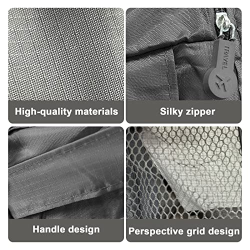 - تصميم ذكي: يتميز منظم السفر بتصميم شبكي شفاف وجيد التهوية، مما يسمح لك بالوصول السريع والعثور على ما تحتاجه. تصميم محمول، يمكنك اصطحابه معك في حالة زيادة الوزن في المطار