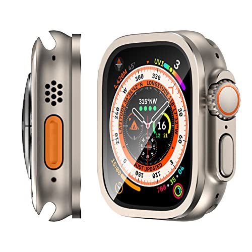 JSHshield - Smartwatch Screen Protector for Watch 8 Ultra 49mm iwatch Tempered Glass Cover Alloy Frame Touch Sensitive Case Protective Glass Film Anti Scratch