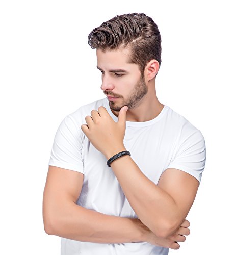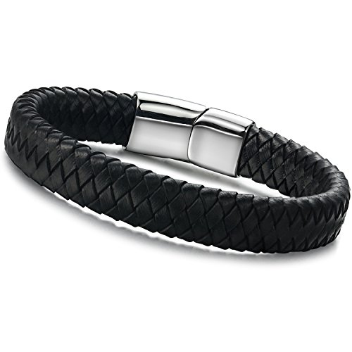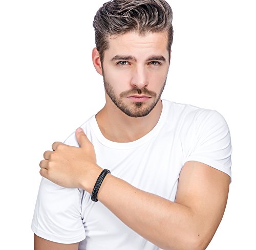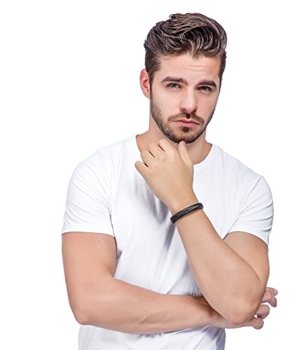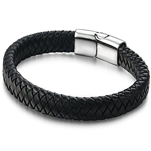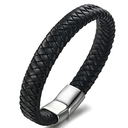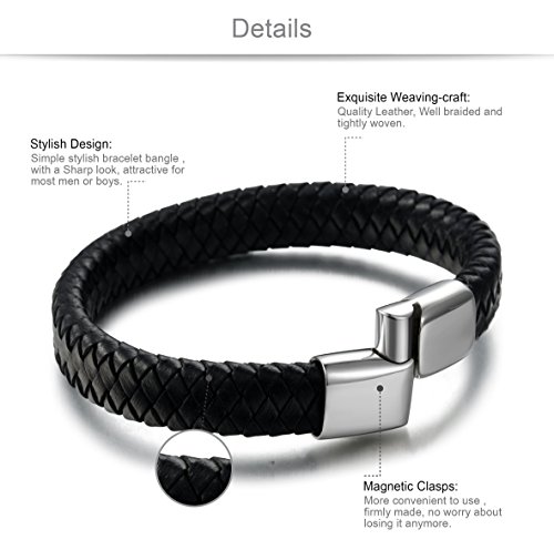 Jstyle - Jstyle Braided Leather Bracelets for Men Bangle Bracelets Fashion Staniless Steel Clasp 7.5-8.5 Inch, 8 inch, Metal, Cubic Zirconia