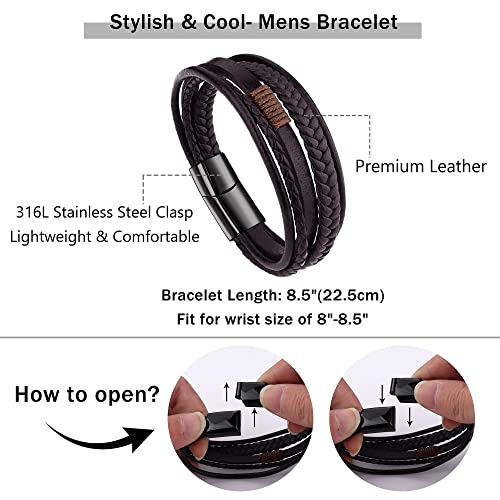 Jstyle - Jstyle Braided Leather Bracelets for Men Women Steel Clasp Woven Leather Bracelet Men Cuff Bangle Leather Bracelets, 8.5 inches, Stainless Steel Leather Steel, Cubic Zirconia