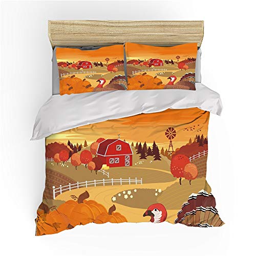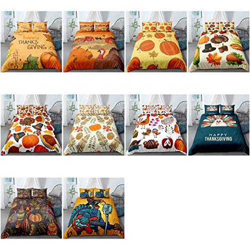 JSYJ - طقم سرير 2/3 قطع من جيه اس واي جيه، غطاء لحاف مفرد مزدوج بطباعة ثلاثية الابعاد مقاس كامل لعيد الشكر - غطاء لحاف يقطين و1/2 كيس وسادة، فراش سكن الطلاب، مع سحاب اغلاق، مزيج القطن