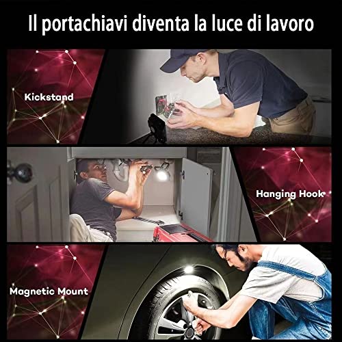 - 【تصميم محمول متعدد الوظائف】 مصباح يدوي LED صغير بخطاف مريح، قاعدة مغناطيسية قوية، مقبض قابل للطي 180 درجة، فتاحة علب، فتحة حامل ثلاثي القوائم. يمكن ربطها بشنطة الظهر أو حلقات المفاتيح أو غيرها من الأشياء، تصميم مغناطيسي يسمح لك بتوصيل المصباح بأي معدن ووضع المصباح بزوايا مختلفة أو تعليقه، مما يسمح لك بتحرير يديك أثناء العمل.