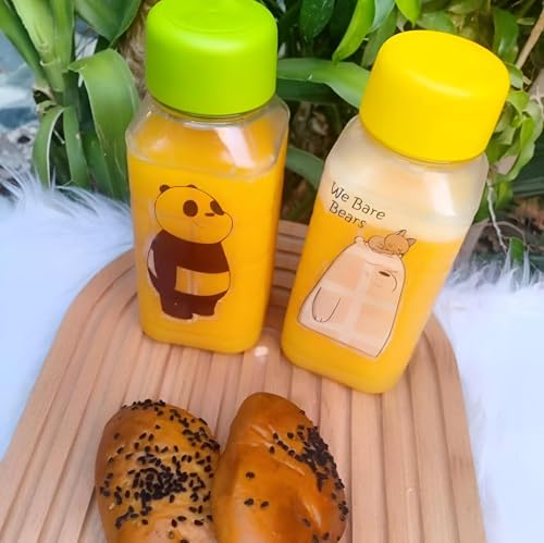 Generic - Juice Bottle - Colorful Child-Friendly 300ml Plastic Transparent Design with Cartoon Characters, Multishape Reusable Cold Drink Container with Colored Lid, Safe for Kids' Refreshments