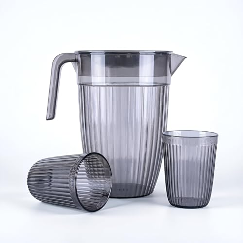 - Crafted from high-quality, BPA-free plastic material, the pitcher and cups are safe for refrigeration and dishwasher use, preserving flavor integrity without odor retention and enabling quick, hassle-free cleaning after every use.