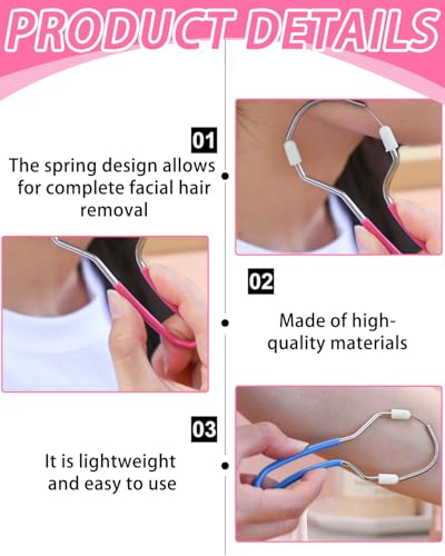 - Convenient design: manual thread epliators are designed with springs, can remove facial hair naturally, no fading, hair removal or chemicals are needed, safer and more reliable to use, the handles are non-slip, easy and comfortable to grip without slipping from your hands