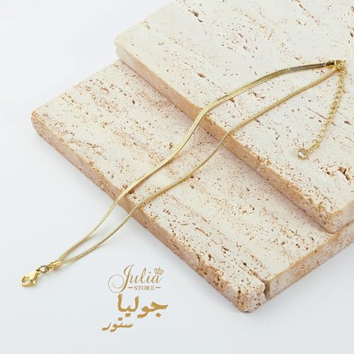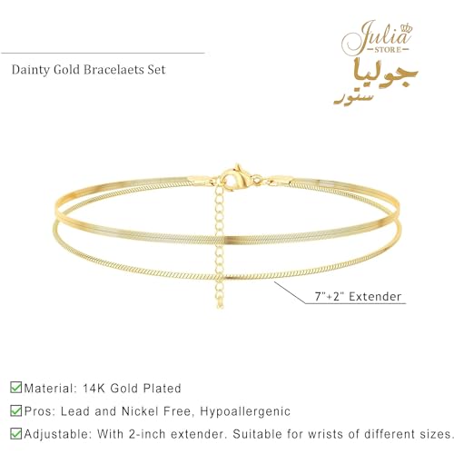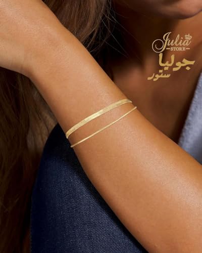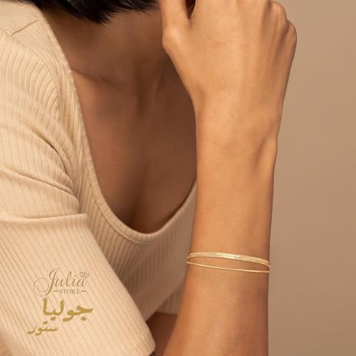 Julia Store - طقم اساور مجوهرات من الستانلس ستيل المطلي بالذهب الحقيقي عيار 14 قيراط للنساء جوليا ستور سوار عصري مقاوم للماء وقابل للتكديس متعرج بتصميم ثعبان هدايا عصرية والفتيات