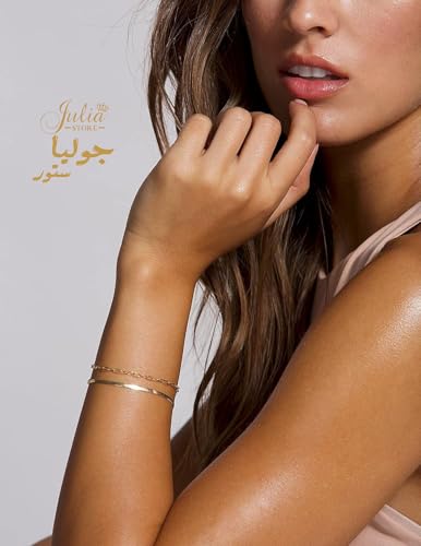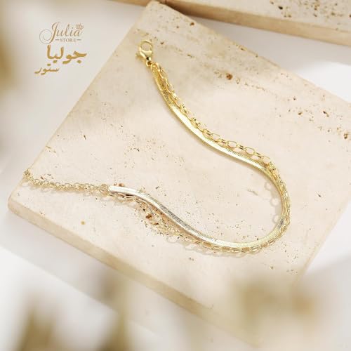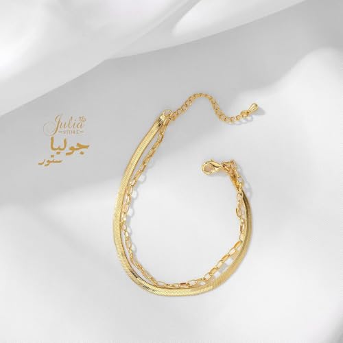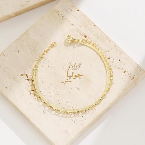 Julia Store - سوار من الستانلس ستيل 316L مطلي بالذهب عيار 18 قيراط بتصميم عصري وانيق عالي الجودة لا يسبب الحساسية خرز لطيف للنساء والفتيات جوليا ستور