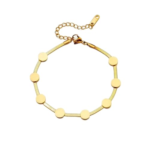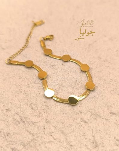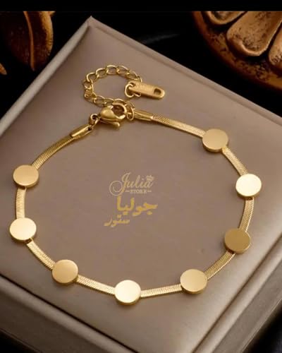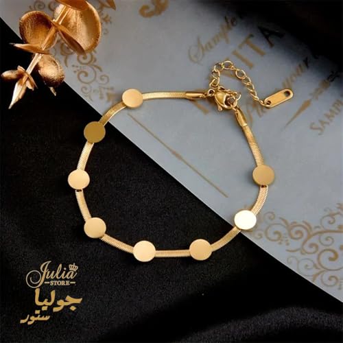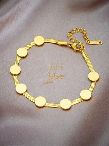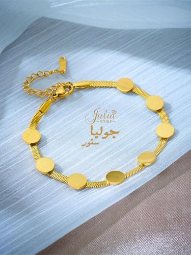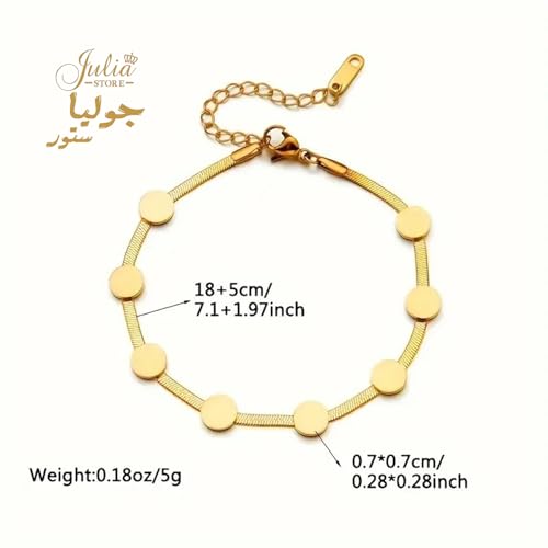 Julia Store - Julia Store 18K Gold Plated 316L Stainless Steel Trendy Elegant Snake Herringbone Dainty Shiny Disc Coins Waterproof Hypo-Allergic Chain Bracelet Jewelry Gift
