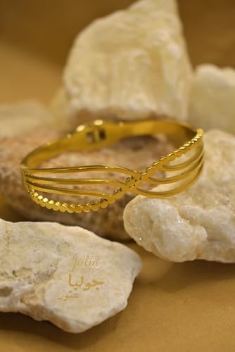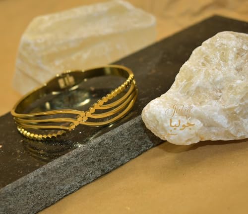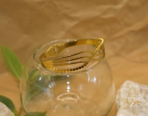 Julia Store - Julia Store 18K Gold Plated 316L Stainless Steel Trendy Luxury Celebrity Love Wave Gold Plated Nail Oval Bracelet Bangle Stackable Friendship Bracelets Bangles