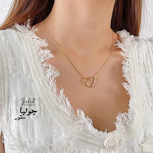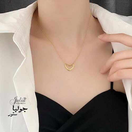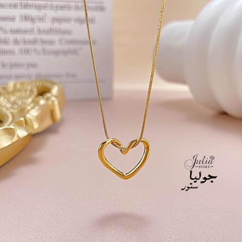 Julia Store - Julia Store 18k Gold Plated 316L Stainless Steel Trendy Luxury Simple Cute Delicate Open Hollow Heart Necklace Jewelry for Women