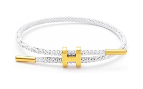 Julia Store - Julia Store 18K Gold Plated Buckle Design Titanium Steel Wire Rope Adjustable H Rope Bracelet for Women Men Waterproof Minimalist Wire Rope Charm Bracelet Couple Bracelet Fashion Jewelry (White)
