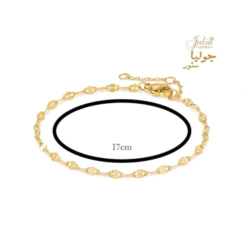 Julia Store - إسورة من متجر جوليا للنساء، مصنوعة من الستانلس ستيل، بلون ذهبي وتصميم عصري، مقاس 20.32 سم