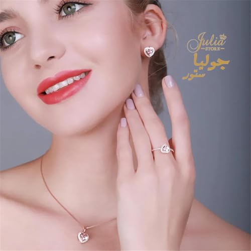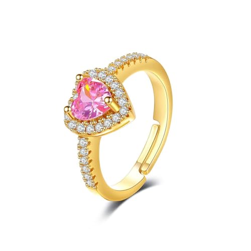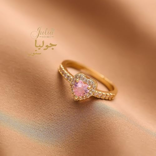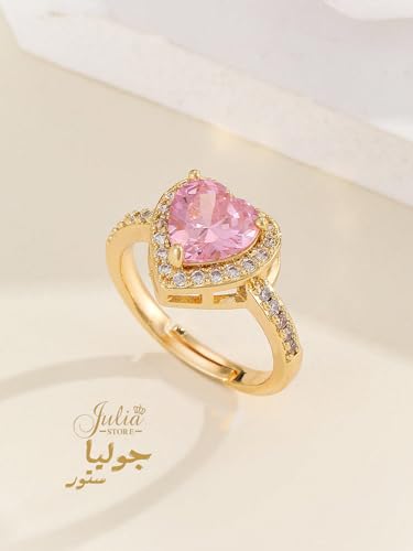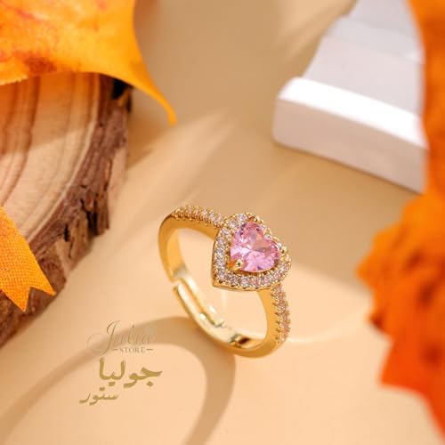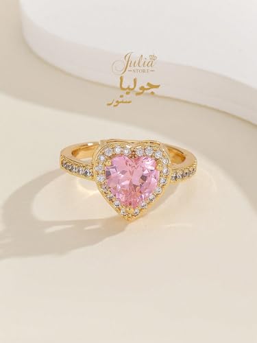 Julia Store - Julia Store 18K Gold Plated Halo Heart Engagement Rings for Women, Free Sire 2CT Pink Cubic Zirconia Heart Wedding Ring Anniversary Valentine's Day Gifts