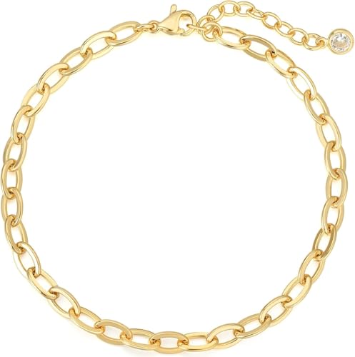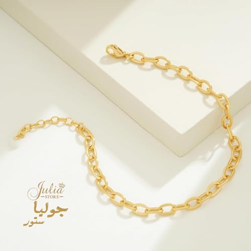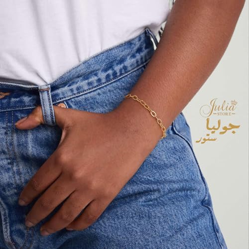 Julia Store - Julia Store 18K Gold Plated Oval Chic Elegant Paperclip Chain Stainless Steel Dainty Simple Gold Paper Clip Bracelet Non Tarnish Gold Bracelet for Women Trendy Fashion Aesthetic Jewelry Gift