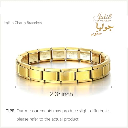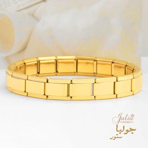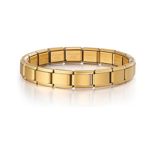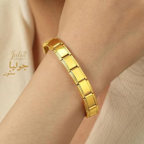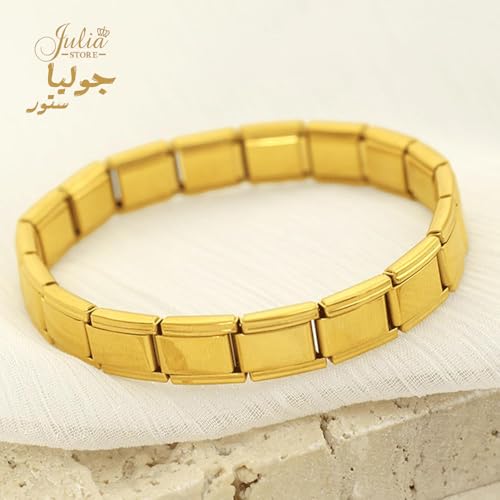 Julia Store - Julia Store 18K Gold Plated Shiny 9mm Italian Charm Starter Bracelets 18 Links DIY Customization Elastic Interlocking Stainless Steel Modular Charm Bracelet Link Jewelry Gift Men Women