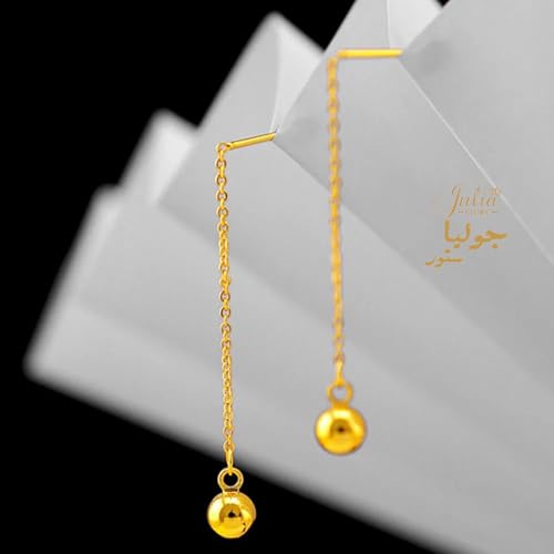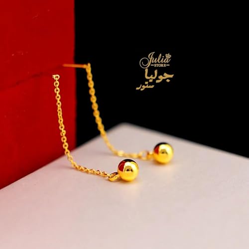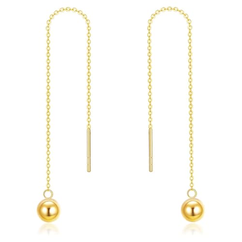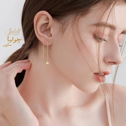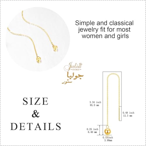 Julia Store - Julia Store 18K Gold Plated Stainless Steel 5MM Ball Long Chain Trendy Dainty Luxury Minimalist Pull Through Threader Earrings Jewelry for Women