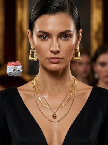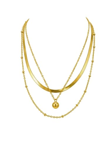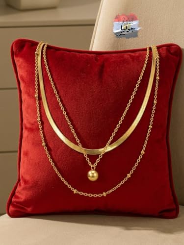 Julia Store - Julia Store 18K Gold Plated Stainless Steel Aesthetic Exquisite Luxury Romantic Elegant Dainty Cute Trendy Elegant Layered Herringbone Snake Beaded Thin Chain Dangle Ball Pendant Necklace Jewelry Gift