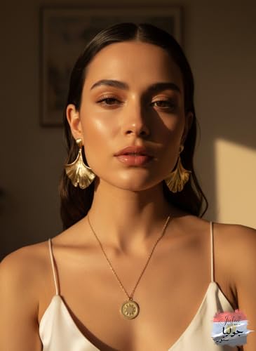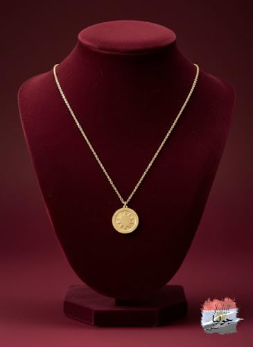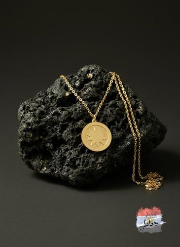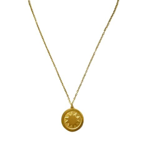 Julia Store - عقد بقلادة من الستانلس ستيل المطلي بالذهب عيار 18 قيراط من جوليا ستور بتصميم جمالي فاخر ورومانسي وانيق وانيق، قلادة انيقة وعصرية بتصميم شمس مشرقة، هدية مجوهرات