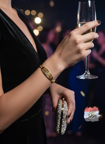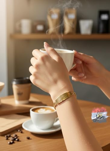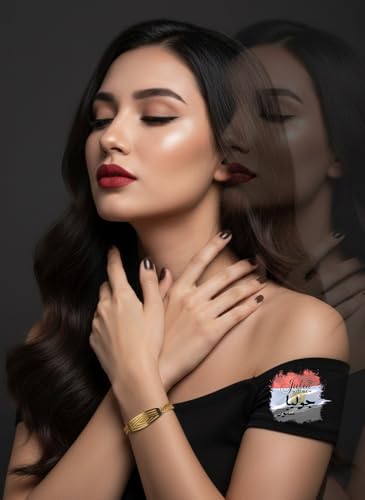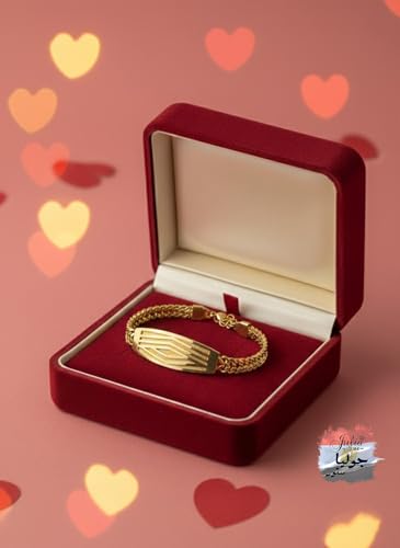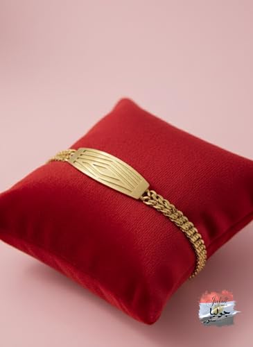 Julia Store - سوار من الستانلس ستيل المطلي بالذهب عيار 18 قيراط من جوليا ستور، سوار جميل فاخر وعصري بسلسلة مزدوجة مع شبكة ايطالية مخرشة، سوار لطيف للرجال والنساء