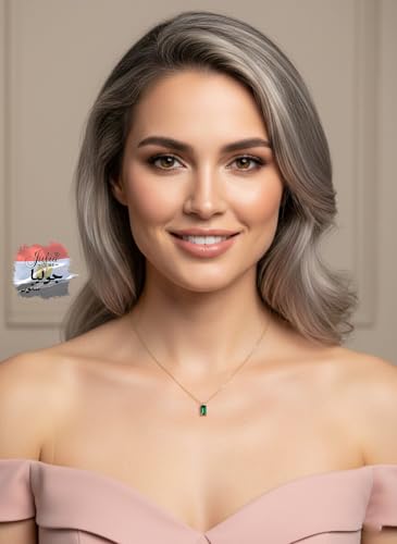 Julia Store - عقد بقلادة من الستانلس ستيل المطلي بالذهب عيار 18 قيراط من جوليا ستور، تصميم جميل وفاخر وعصري لطيف بنمط الاميرة الصغيرة وحجر الراين والزركون المقلد والزمرد الاخضر للنساء، هدية مجوهرات