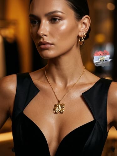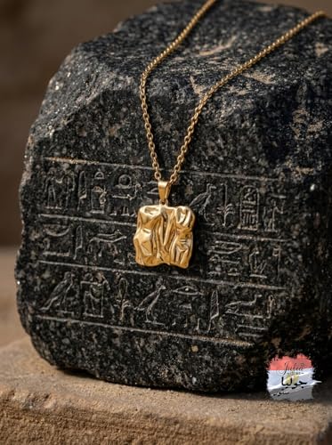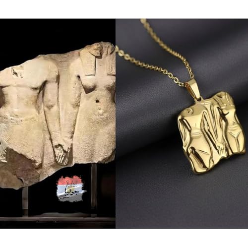 Julia Store - قلادة من الستانلس ستيل المطلي بالذهب عيار 18 قيراط من جوليا ستور، قلادة فاخرة فاخرة وعصرية للزوجين الملكيين المصريين القديمين - مستوحاة من منحوتات المتحف - هدية مجوهرات رمز الحب الابدي
