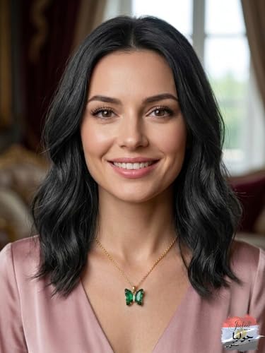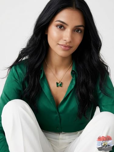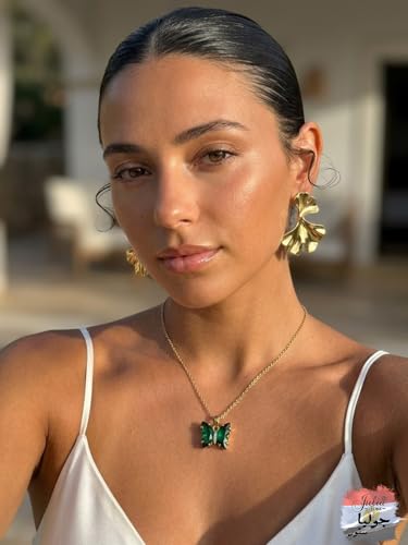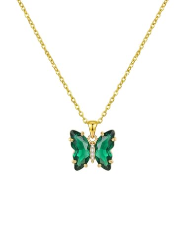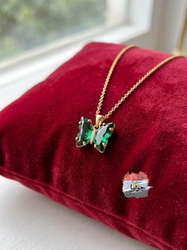 Julia Store - قلادة من الستانلس ستيل المطلي بالذهب عيار 18 قيراط على شكل فراشة خضراء للنساء والبنات من جوليا ستور، قلادة بدلاية على شكل فراشة ملونة للنساء والفتيات