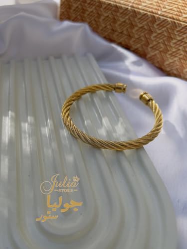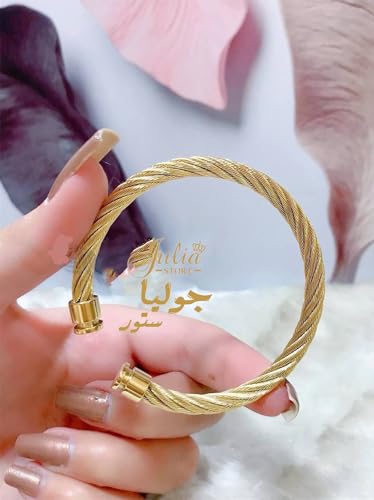 Julia Store - Julia Store 18K Gold Plated Stainless Steel Cable Wire Bracelets Unisex Dainty Charm Bangle Bracelet Inspirational Adjustable Cuff Bracelet Jewelry Best Seller Birthday Gift