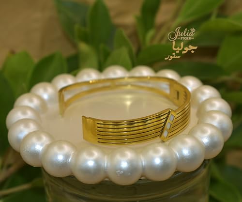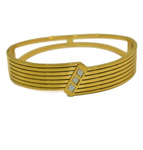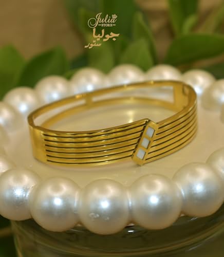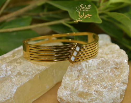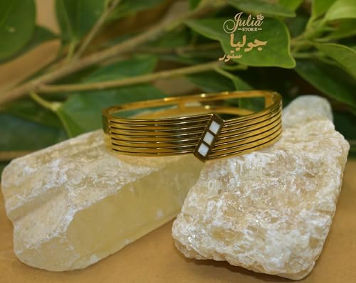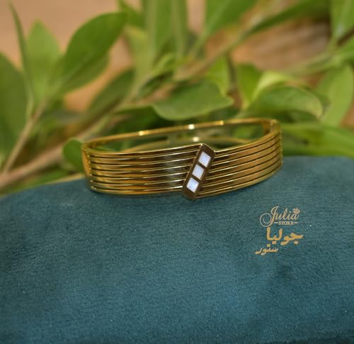 Julia Store - Julia Store 18K Gold Plated Stainless Steel Chunky Bangle Bracelets for Women Vintage Boho Wide Mother Of Pearl Bangle Bracelets Statement Bracelet Thick Arm Gold Bracelet