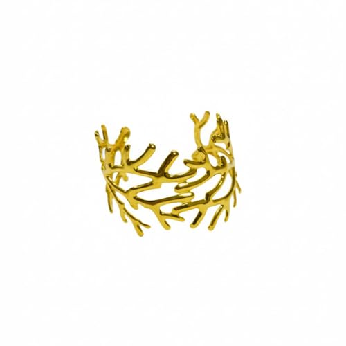 Julia Store - Julia Store 18K Gold Plated Stainless Steel Cuff Vintage Boho Wide Bangle Irregular Statement Bracelet Coral Reef Chunky Gold Fashionable Mermaid Cuff Bracelet Jewelry Gift