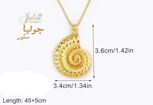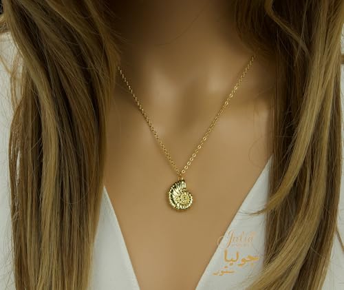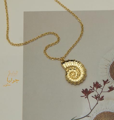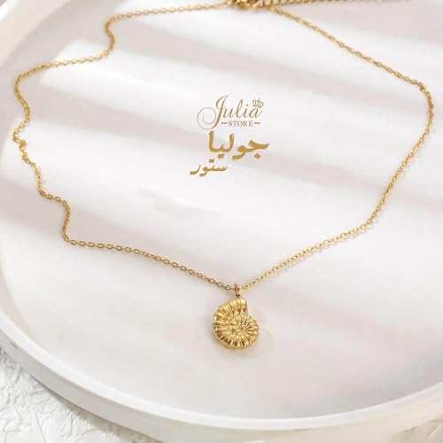 Julia Store - قلادة محارة من الستانلس ستيل المطلي بالذهب عيار 18 قيراط بتصميم بوهو لطيف ومخصص على شكل بوهو مع طوق للنساء من جوليا ستور، سلسلة ربط بسيطة ابداعية للفتيات والعطلات والشاطئ
