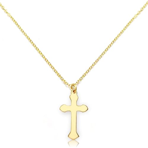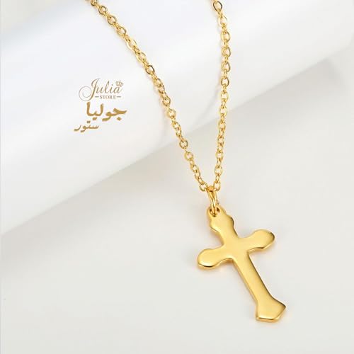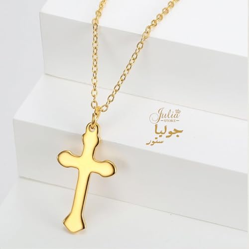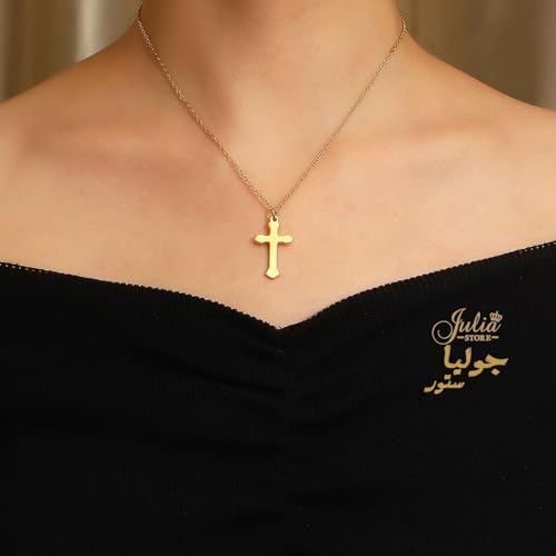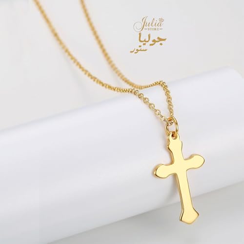 Julia Store - Julia Store 18K Gold Plated Stainless Steel Dainty Cross Necklace Catholic Orthodox Trendy Faith Pendant Necklace Minimalist Handmade Crucifix Chain Necklace Gift