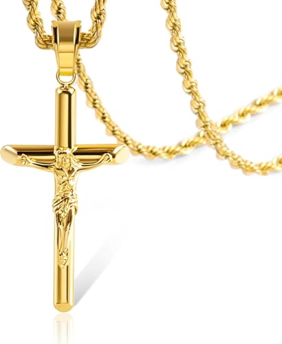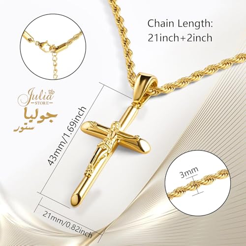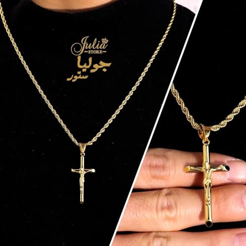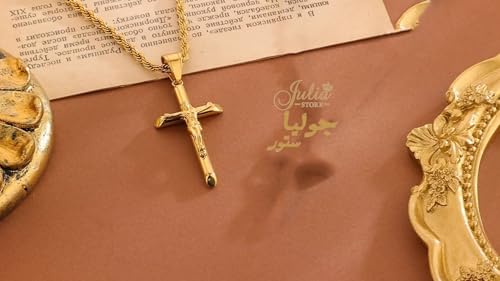 Julia Store - Julia Store 18K Gold Plated Stainless Steel Faith Orthodox Catholic Cross Jesus Christ Twist Rope Chain Trendy Dainty Simple Link Necklaces for Women Men Cross Chain Crucifix Necklace Women