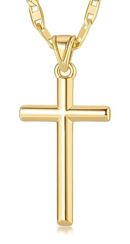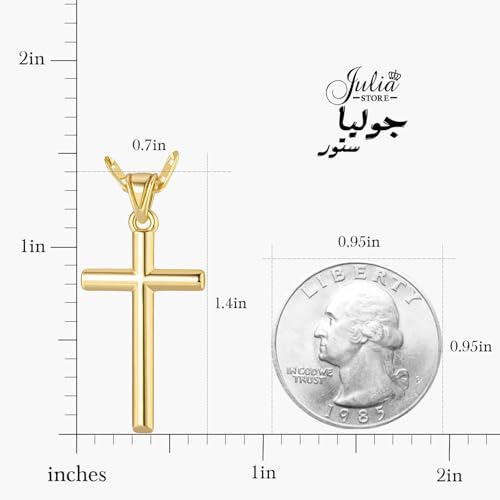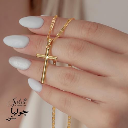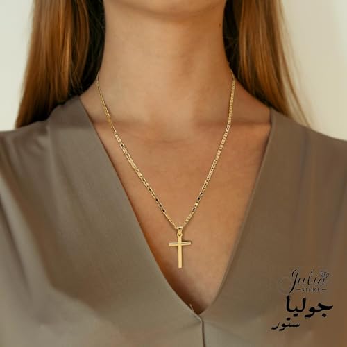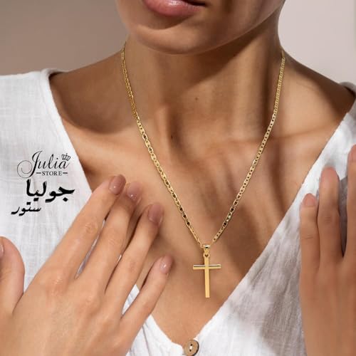 Julia Store - عقد ستانلس ستيل مطلي بالذهب عيار 18 قيراط من جوليا ستور بتصميم صليب ارثوذكسي كاثوليكي عصري وانيق للنساء والرجال