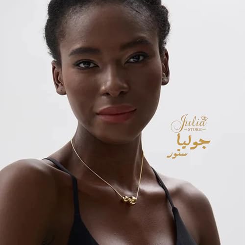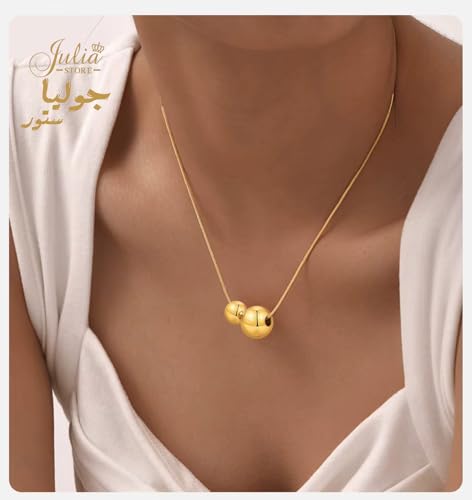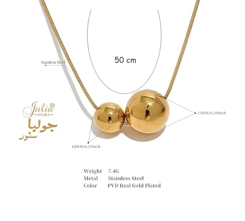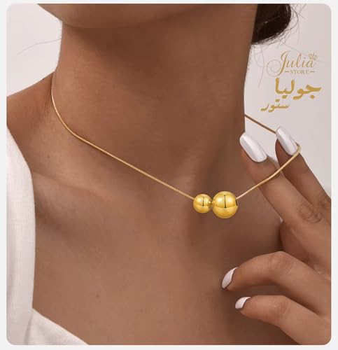 Julia Store - Julia Store 18K Gold Plated Stainless Steel Herringbone Thin Chain Double Shiny Floating Balls Trendy Deluxe Dainty Minimalist Choker Necklace Jewelry Gift For Women 50 CM Jewelry Gift