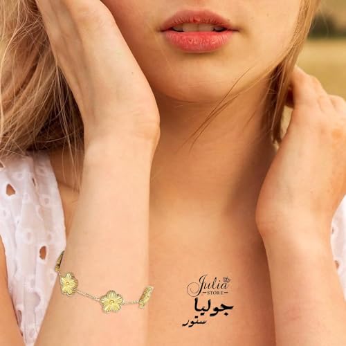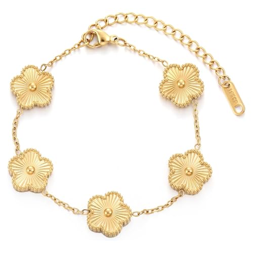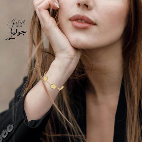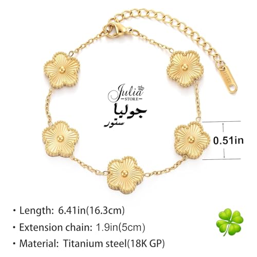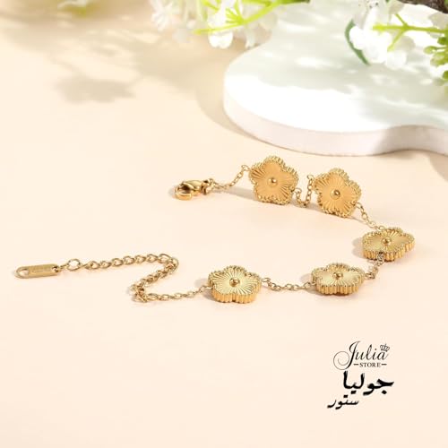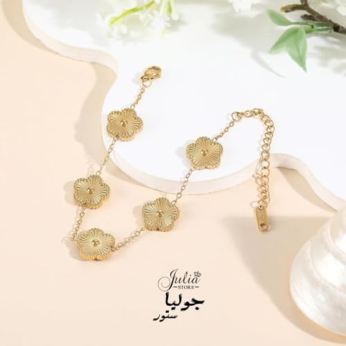 Julia Store - Julia Store 18K Gold Plated Stainless Steel Love Trendy Luxury Lucky Five Leaf Link Clover Rose Flower Bracelet for Women Bracelets Jewelry Gifts for Women